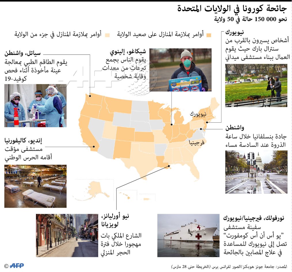 صحيفة السياسة إنفوجرافيك جائحة كورونا في الولايات المتحدة
