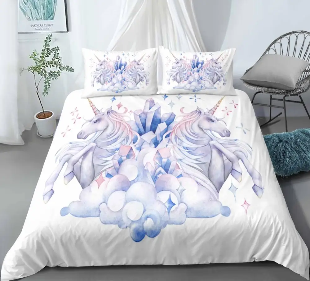 الكرتون يونيكورن سيليود طقم سرير ديكور غرفة نوم دونا خلفية بيضاء الاطفال هدية هيبوالرجينيك 1 قطعة غطاء لحاف مع المخدة مجموعات الفراش Aliexpress