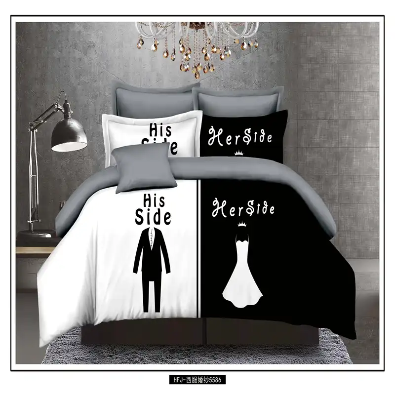 طقم سرير قطني أبيض وأسود كلاسيكي أغطية سرير منسوجات منزلية غطاء لحاف التوأم كامل الملكة الملك الحجم في مجموعات الفراش من المنزل والحديقة على Www Unohama Club Store