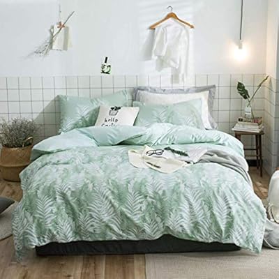 مجموعة غطاء لحاف نباتات استوائية نباتية عصرية زمردية وأزرق وأوراق الغابة طباعة أزهار 100 قطن قطن King Amazon Ae