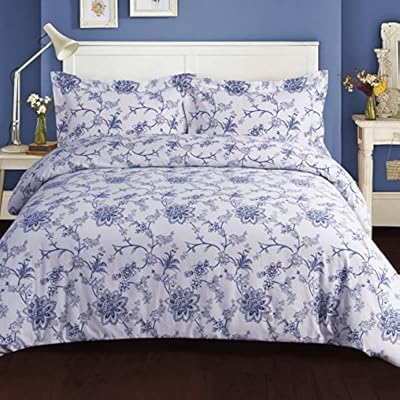 مجموعة أغطية لحاف 3 قطع من تاهاري هوم مايسون بنمط أزهار في ظلال زرقاء على أبيض كينج Amazon Ae