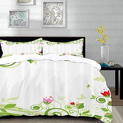 ويك في سحابة الأزهار مجموعة غطاء لحاف 100 الفراش القطن والزهور النباتية ونمط أوراق الأشجار الخضراء المطبوعة على الأبيض مع إغلاق سستة 3pcs حجم الملك Buy Products Online With Ubuy