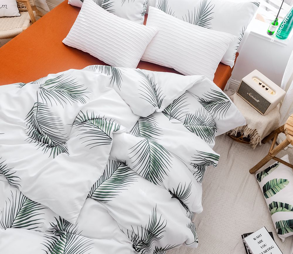 لاكي كنج قطن أبيض ثلاث قطع شجرة خضراء أوراق نقش غطاء لحاف طقم طبيعي ناعم للغاية للمنزل طقم ملايات سرير بالغين 2020 من Luckyjj 180 35ر س موبايل Dhgate