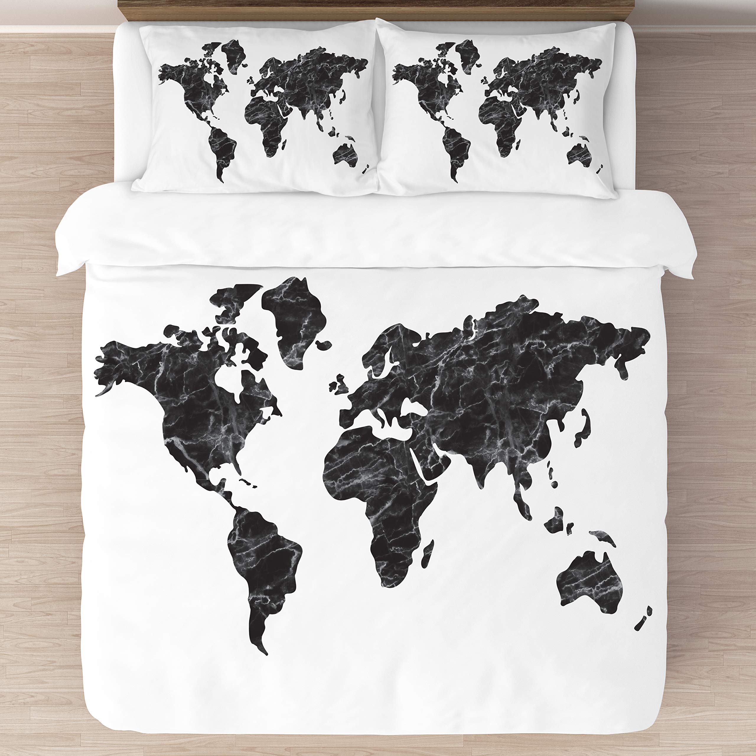 غطاء لحاف لحاف بتصميم خريطة العالم رخامي أبيض وأسود من كيه بي اند مي 3 قطع طقم سرير للمراهقين بمقاس كامل كوين فاخر Amazon Ae