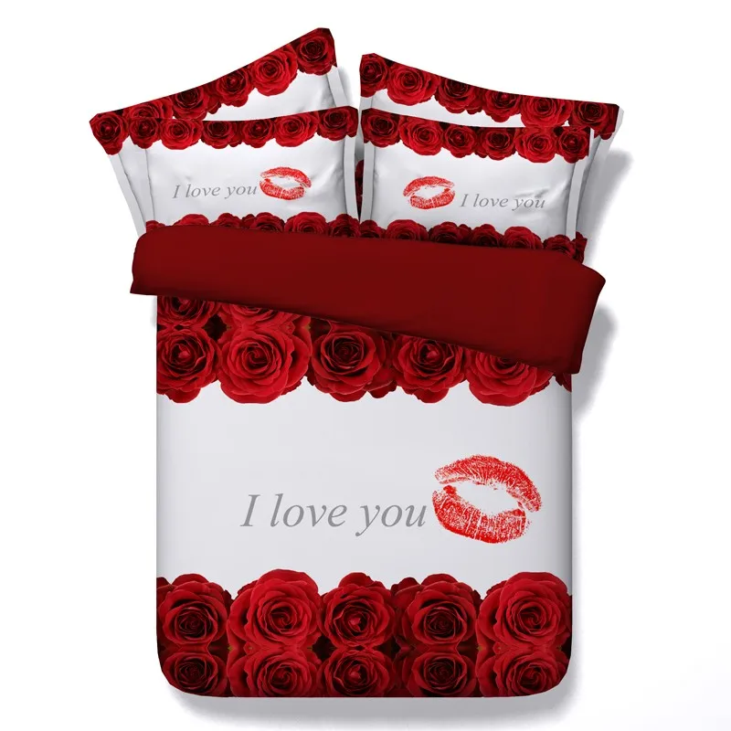 أنا أحبك الفراش يحدد ارتفع أحمر الشفاه لحاف حاف الغطاء انتشار مجموعة ورقة السرير المفرش كاليفورنيا الملك الملكة الحجم الكامل التوأم 4 قطع King Queen Size California Kingbedding Set Red Aliexpress