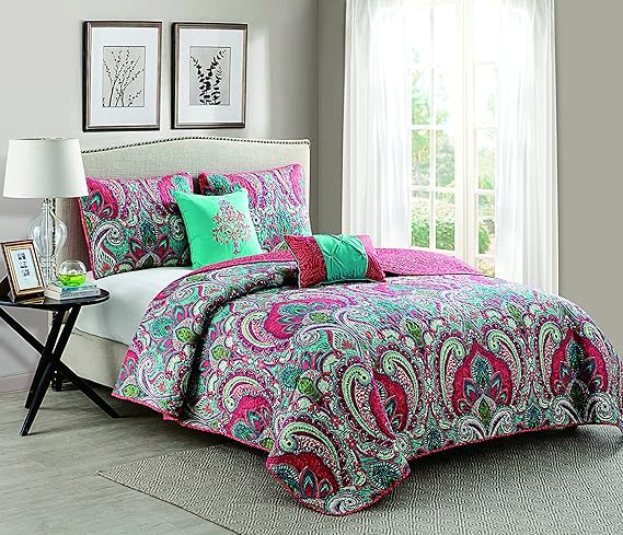 طقم اغطية اللحاف اربان هابيتات قابل للانعكاس مبطنة بطبقات ناعمة من القطن جاكارد لا يسبب الحساسية بينتوك مزخرف ذو وسادة مبطنة من مجموعة مفروشات الشام لجميع المواسم King Cal King Uh10 2150 اشتري اون