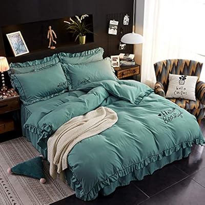 طقم مفارش من القطن 4 قطع لون نقي تنورة سرير بنمط الأميرة الدانتيل غطاء لحاف بسيط كيس وسادة قطن اخضر فاتح 180x220cm 71x87inch Amazon Ae