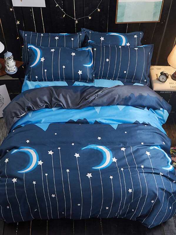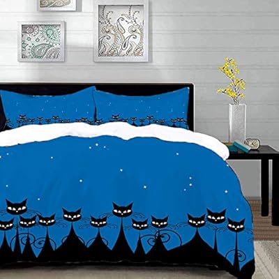 مجموعة الفراش ليلي حشد جرافيك فني للقطط السوداء منمقة وسماء مرصعة بالنجوم على الخلفية أزرق أسود أبيض غطاء لحاف واحد وسائد 50 80 سم Amazon Ae