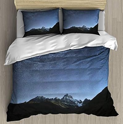 طقم مفروشات ناعم مطبوع عليه مشهد ليلي سماء مليئة بالنجوم مع درب التبانة فوق الجبال غطاء لحاف نمط مجموعة غطاء لحاف مع غطاء وسادة حجم الملكة Amazon Ae