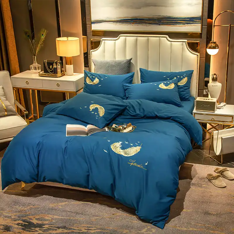 طقم مفارش سرير من Smallsun Bedding من القطن عالي الكثافة من أربع قطع أزرق ملكي سرير قطني غير معقد غطاء وسادة غطاء سرير غطاء لحاف Gravid 1 5 1 8m Amazon Ae