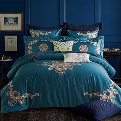 مجموعة فراش فاخرة أزرق أرجواني أبيض أحمر 60s قطن مصري ملكي مطرز غطاء لحاف 4 قطع ملاءة سرير 200 230cm Amazon Ae