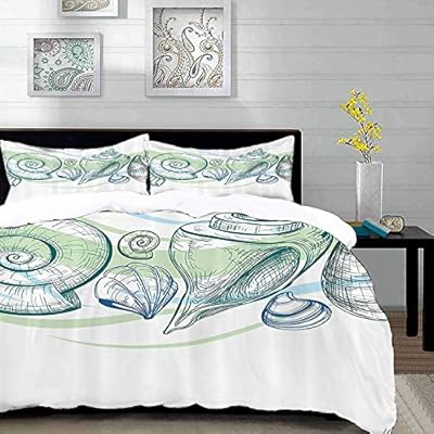 مجموعة الفراش مجموعة صدف رسومات ملونة باستيل من صدف مع ميزات Sketchy وغيرها من سمة عناصر البحر الأخضر الداكن الأخضر كريم غطاء لحاف واحد وسائد 50 80