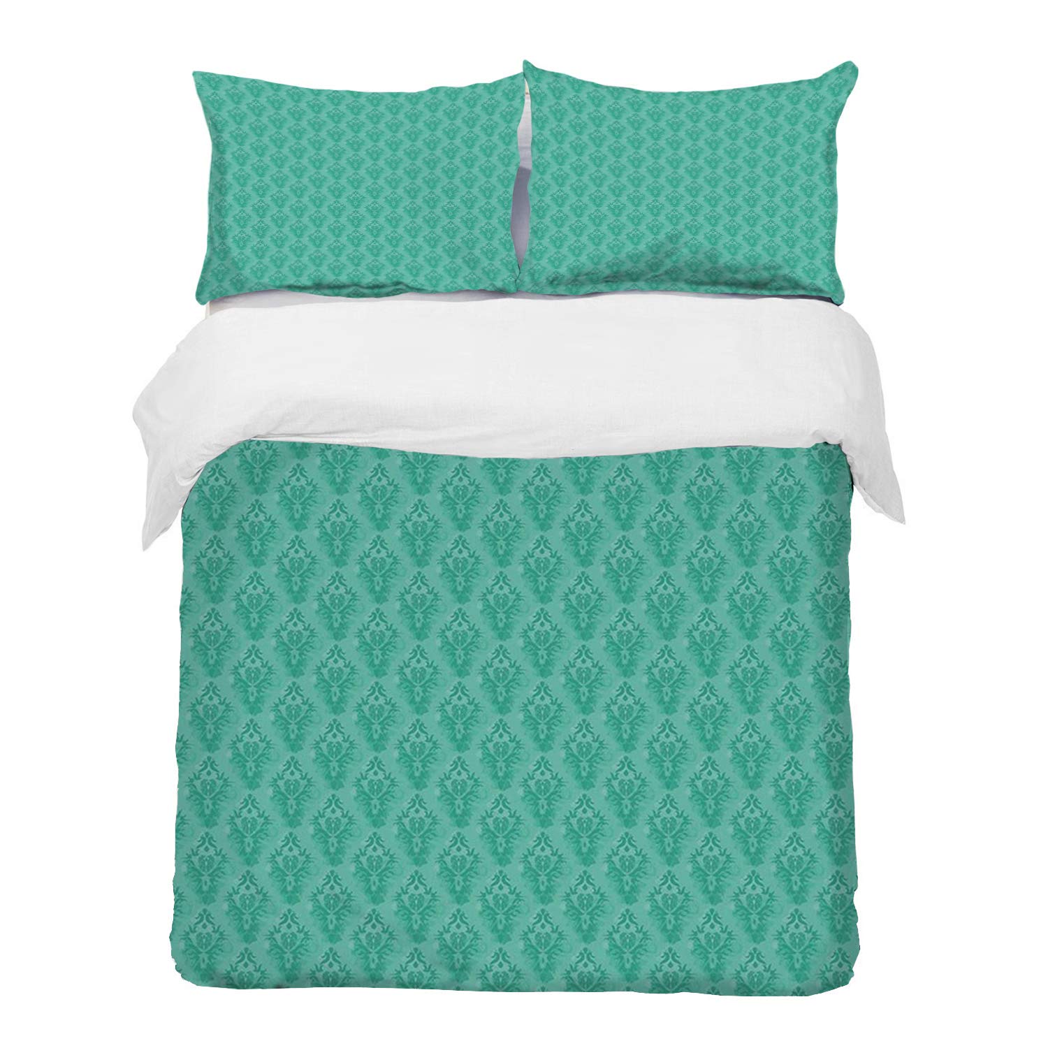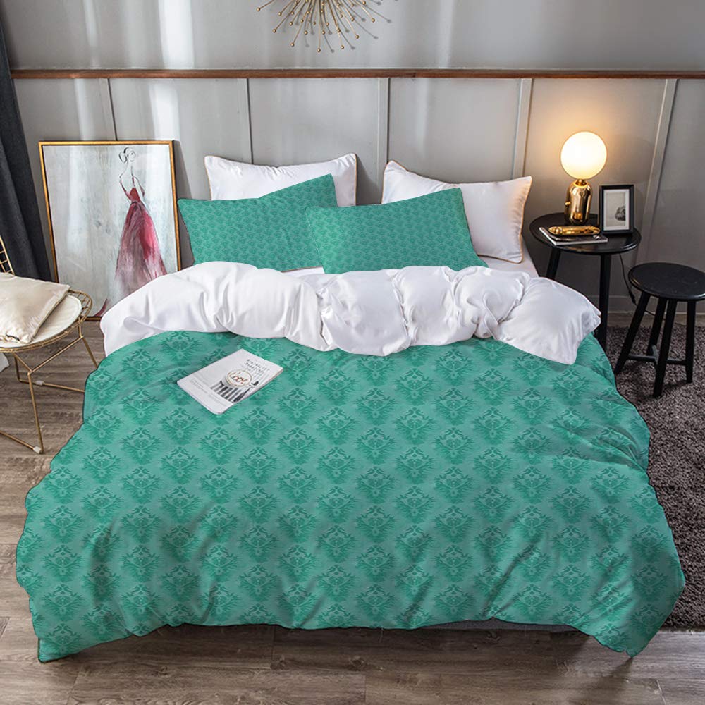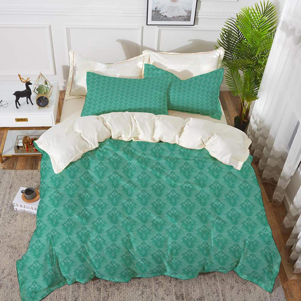مجموعة الفراش دمشقي مجردة نمط قديم الطراز مع تفاصيل جرونية زخارف نباتية تفاصيل الشرقية الزخرفية البحر الأخضر غطاء لحاف واحد وسائد 50 80 سم Buy Online At Best Price In Uae Amazon Ae