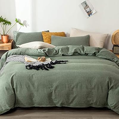 طقم غطاء لحاف من القطن المغسول الملكة الملك التوأم 3 قطع الفراش لينة التجاعيد تصميم سادة رمادي داكن أوف وايت الملكة الأخضر Amazon Ae