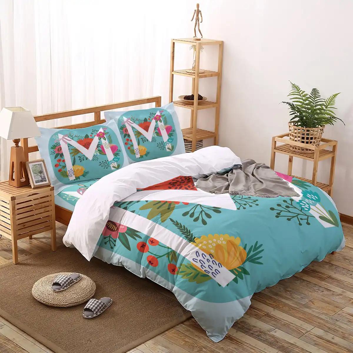 طقم سرير من 3 قطع بطبعة ورود مطبوعة يدوي ا على شكل حرف M لعيد الأب والكريسماس Aliexpress