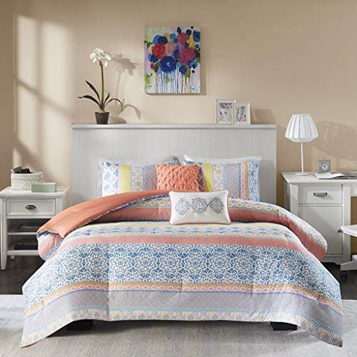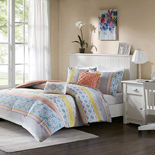 طقم لحاف جوني بتصميم ذكي مقاس توأم مفرد Xl لون مرجاني ازرق نمط بوهيمي طقم سرير 4 قطع سرير المراهقين من الألياف الدقيقة فائق النعومة لغرفة نوم الفتيات Amazon Ae