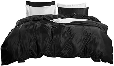 طقم أكياس وسائد من الحرير المقلد من شركة Vanpower غطاء لحاف سرير بلون موحد مقاوم للتجاعيد اسود King Amazon Ae