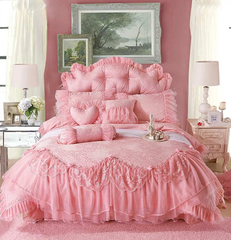 الوردي اللون الأحمر الفاخرة مجموعة فراش الزفاف الحرير غطاء لحاف من القطن غطاء سرير السرير انتشار أغطية سرير سادات 4 6 9 قطع في مجموعات الفراش من المنزل والحديقة على Www Unohama Club Store
