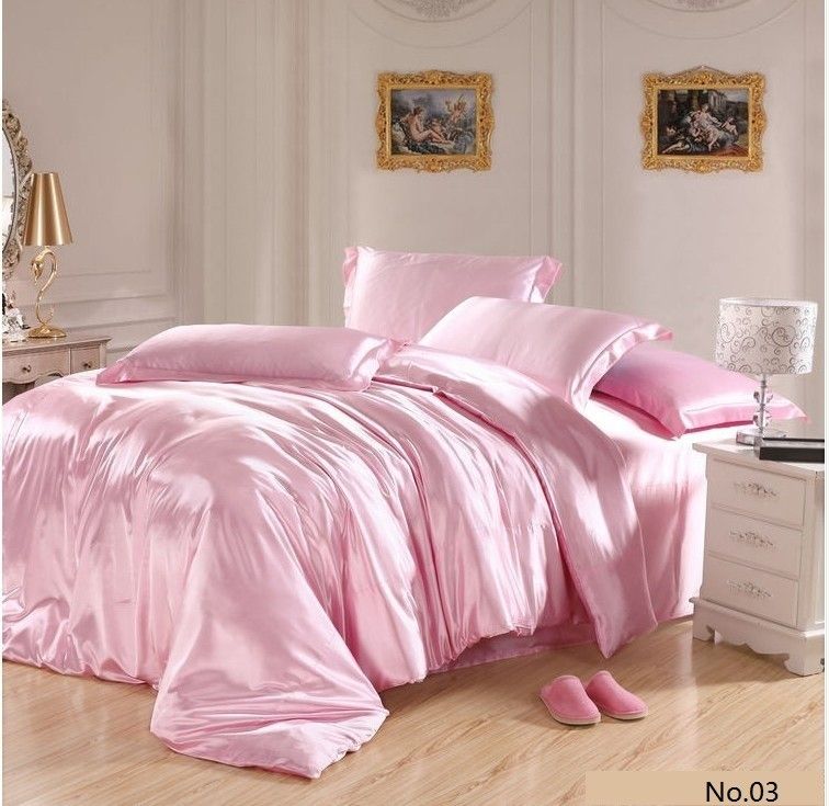 الحرير مجموعات لحاف السرير طقم سرير الوردي الساتان الصينية لحاف حرير يغطي السرير في كيس ورقة دونا لحاف الملك الملكة حجم التوأم الكامل غطاء السرير السرير في حقيبةالسرير في حقيبة Aliexpress