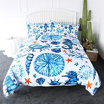 Arightex الأزرق فرس البحر الفراش ألوان مائية البحر مخلوقات غطاء لحاف مجموعة 3 قطع المحيط الشعاب المرجانية سرطان البحر البحر ازرق Full Amazon Ae