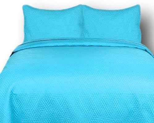 Kasentex 3 قطعة القطن لحاف مجموعة الغطاء الصلبة الأساسية المعزي ولحاف تغطية لينة جدا مع تصميم بسيط العلاقات الزاوية مع 2 شمس القياسية الأزرق الفاتح مجموعة الملكة Buy Products Online With