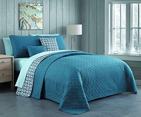 لحاف Avondale Manor Del Ray Quilt الملكة أزرق بحري أزرق فاتح Amazon Ae