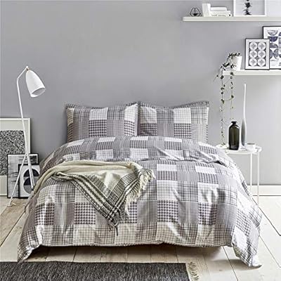 طقم لحاف فاخر من 3 قطع من Mofeel بنمط مربعات رمادية وبيضاء منقوشة 1 غطاء لحاف 2 غطاء وسادة مزخرف مزدوج هاوندستوث بوليستر Queen Amazon Ae