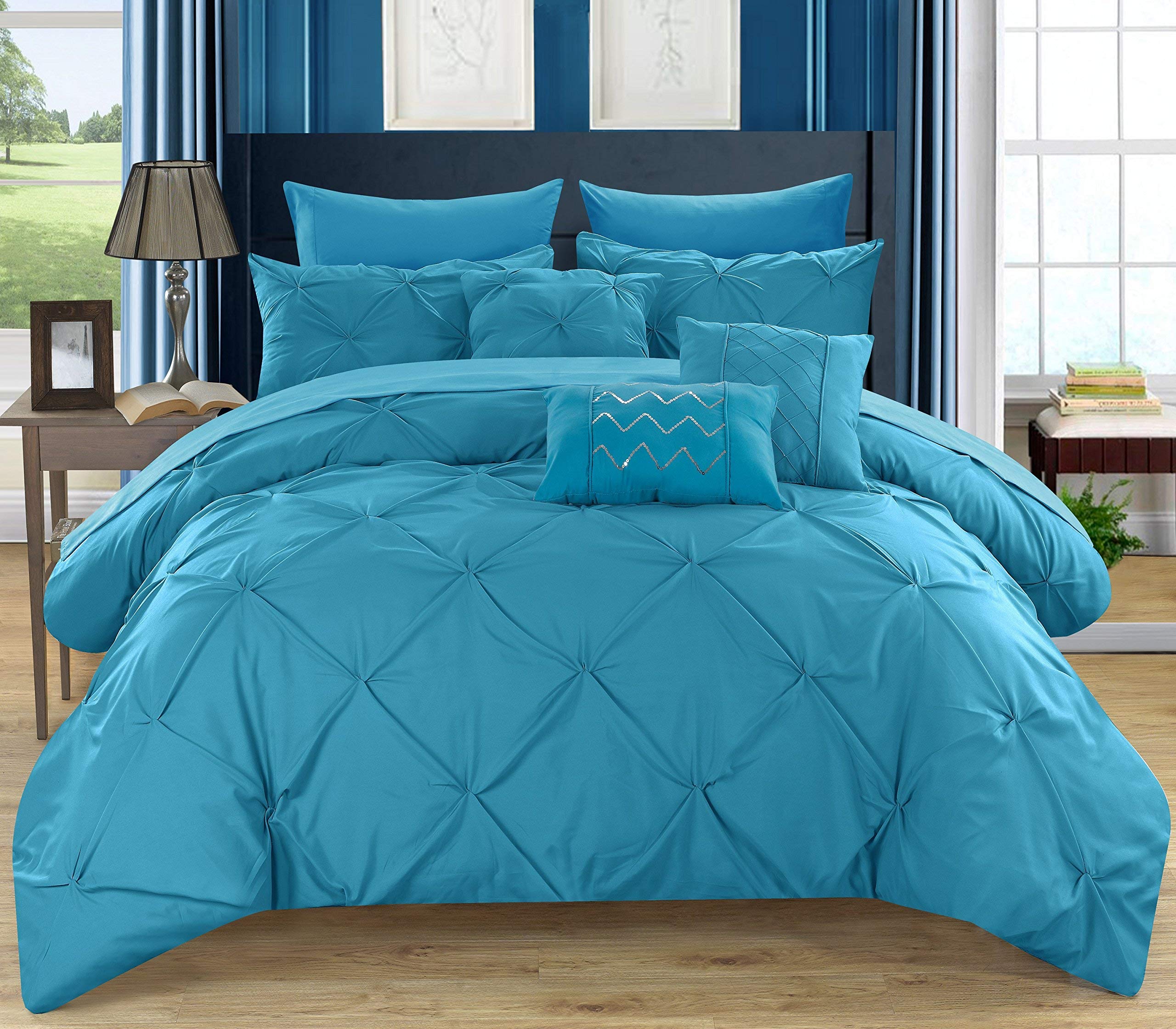 طقم لحاف شيك هوم هانا 8 قطع سرير كامل في حقيبة سرير مكشكش مكشكش مع طقم ملاءات ووسائد مزخرفة وشمس توين تركواز Amazon Ae