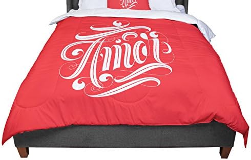 Roberlan من Kess Inhouse Amor باللون الأحمر والأبيض مقاس مزدوج لحاف واحد 68 سم 88 سم Multicolor Queen Amazon Ae