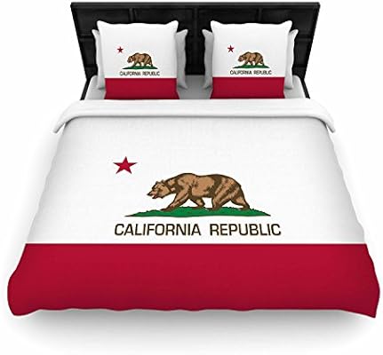 قميص Bruce من Kess Inhouse Stanfield علم ولاية كاليفورنيا باللون الأحمر والأبيض منسوج من غطاء اللحاف مقاس كوين 88 بواسطة 88 Inch 88 بوصة 88 بوصة Amazon Ae