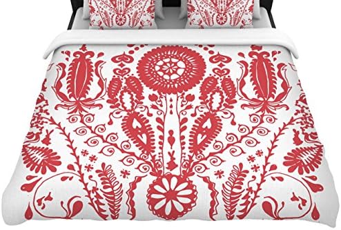 كيس لحاف Ke1005adw01 منسوج Luvprintz من Kess Inhouse مرسوم عليه زهور مكتوب عليه باللون الأحمر والأبيض مقاس مزدوج منسوج من غطاء اللحاف 68 سم 88 سم Amazon Ae