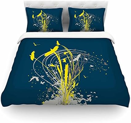Frederic من Kess Inhouse Levy Hadida Migratory أنماط باللون الأزرق باللون الأصفر غطاء لحاف واحد ا من القطن Blue 88 X 88 Amazon Ae