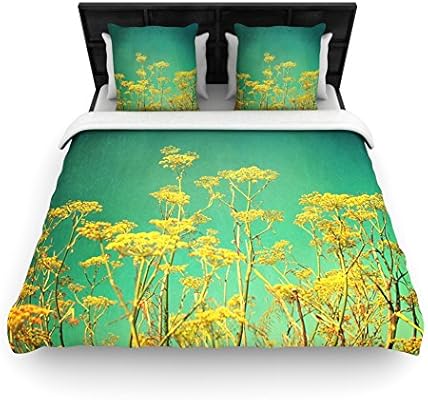 Kess Inhouse مرسوم عليها زهور سلفيا كوك باللون الأصفر باللون الأزرق المخضر Sky 68 بواسطة 88 منسوج من غطاء اللحاف مقاس مزدوج Amazon Ae