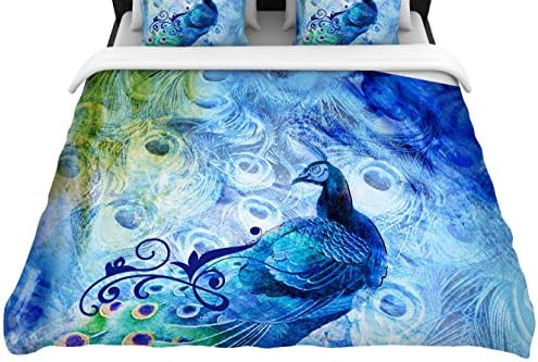 كيس لحاف Vk1030adw03 منسوج من Kess Inhouse Victoria Krupp باللون الأزرق طاووس باللون الأزرق رقمية باللون الأصفر مقاس King Cal King منسوج من غطاء اللحاف 104 بوصة 88 سم Amazon Ae