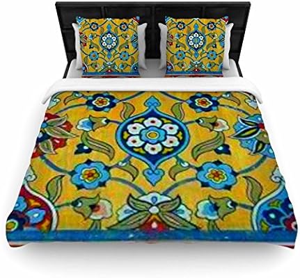 S من Kess Inhouse Seema Z الفارسي مزاج باللون الأصفر باللون الأزرق مقاس Queen منسوج من غطاء اللحاف 88 بواسطة 88 Inch 88 بوصة 88 بوصة Amazon Ae