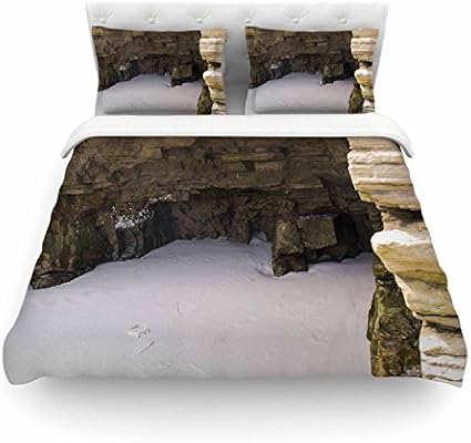 غطاء اللحاف Nn1048acd03 من Kess Inhouse Nick Nareshni سم الحجر الرملي الجدران باللون الأبيض مقاس King باللون البني الريشة من غطاء اللحاف 104 بوصة 88 سم Amazon Ae