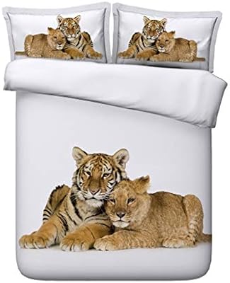 مجموعة فرش سرير ثلاثية الأبعاد باللون البني والأسود والبنات من 3 قطع غطاء لحاف لحاف لحاف غطاء سرير مع سحاب إغلاق من الحياة البرية نمر King Amazon Ae