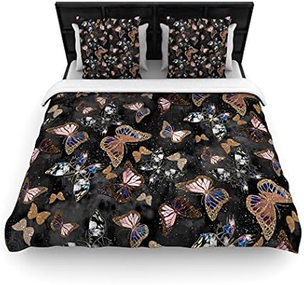 Nikki من Kess Inhouse Strange باللون الأسود على شكل فراشة باللون البني 68 المجرات بواسطة 88 منسوج من غطاء اللحاف مقاس مزدوج Amazon Ae