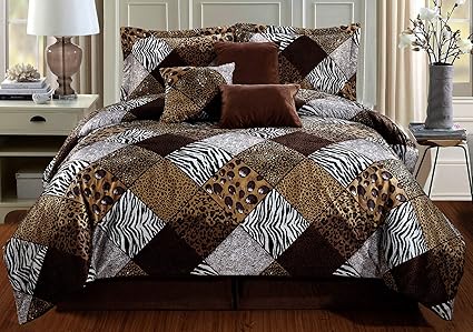 طقم لحاف سفاري سفاري مطبوع عليه أشكال حيوانات باللون البني والأسود والأبيض فراش فهد وحمار الوحشي المخملي مع وسائد أنيقة وتنورة للسرير Full Amazon Ae