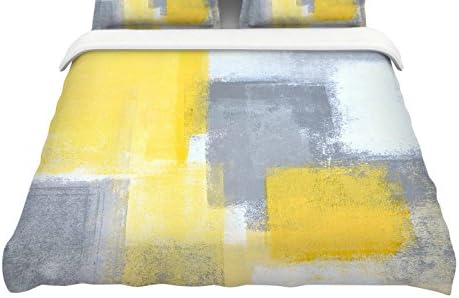 Ct3076 A من Kess Inhouse Carollynn Tice باللون الأصفر ثابتة اللون الرمادي الريشة من غطاء اللحاف 104 X 88 Amazon Ae