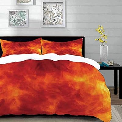 مجموعة الفراش اللون البرتقالي رسم تصميمي لانفجار النار نابض بالحياة حارق الحرارة تصميم موضوع فن الطباعة ديكور أصفر برتقالي غطاء لحاف واحد