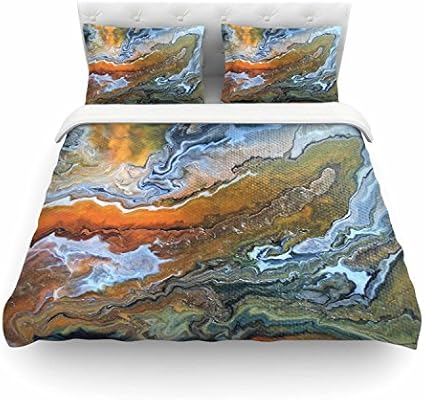كارول من Kess Inhouse Schiff Geologic عروق باللون البني باللون البرتقالي غطاء لحاف واحد ا من القطن Green 104 X 88 Amazon Ae