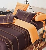 الفاخرة موضة الفراش مجموعات البني البرتقالي الأبيض المشارب حاف الغطاء الأعمال غطاء سرير التوأم كامل الملكة الملك الحجم المفارش Aliexpress