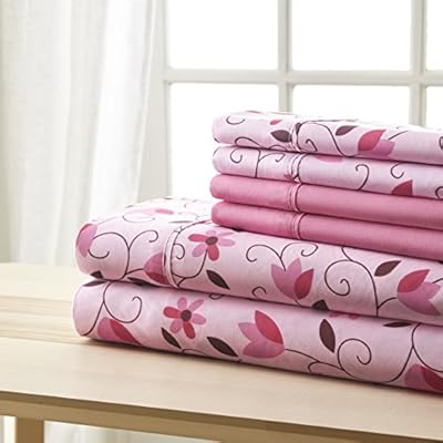 Spirit من الكتان Inc فندقية الخامس Ave مزدوج متوفر باللون الوردي وأوراق شجر باللون البني طقم ملاءات من 4 قطع من مجموعة Bellagio المنزل Amazon Ae