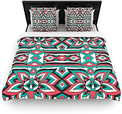88 بواسطة 88 من Kess Inhouse بوم تصميم رسومات زهرية الإثنية الفسيفساء منسوج اللحاف Queen لون أزرق مخضر باللون الأحمر Amazon Ae