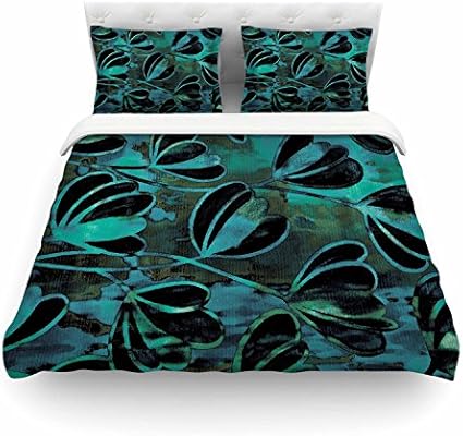 غطاء اللحاف Jd1363acd02 من Kess Inhouse Ebi Emporium Efflorescence الليل صورة زهرة باللون الأزرق المخضر ألوان مائية باللون الأسود مقاس Queen الريشة من غطاء اللحاف 88 بوصة 88 سم Amazon Ae