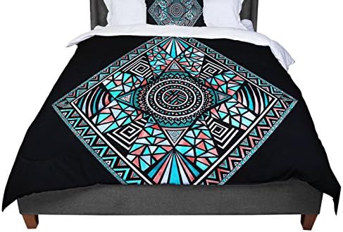 زينة من Kess Inhouse مرسوم عليه صورة التصميم Geo الزجاج باللون الأزرق المخضر باللون الأسود مقاس مزدوج لحاف واحد 68 سم 88 سم Amazon Ae
