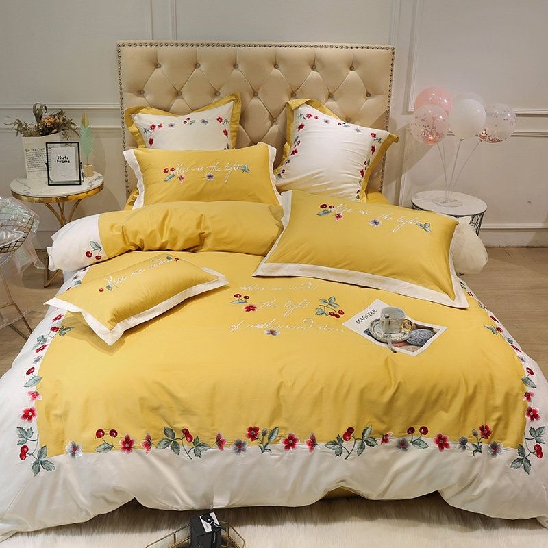طقم سرير مطبوع بالزهور باللون الأصفر والملكة حجم كوين غطاء سرير من القطن المصري ملاءة سرير غطاء لحاف طقم سرير 2020 من Robby87 588 52ر س موبايل Dhgate