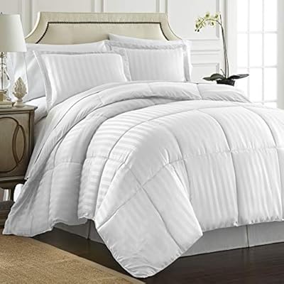 طقم لحاف بديل من سباريت لينن هوم 3 قطع مصنوع من الساتان المخطط للأسفل قابل للعكس مقاس كينغ أبيض Amazon Ae