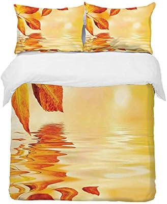 مجموعة الفراش البرتقالي المحترق أوراق شجر القيقب الخريف على الماء مع الصوفي السحري عرض الحزن الشمس الفن الزخرفي البرتقالي الذهبي غطاء لحاف واحد وسائد 50 80 سم Amazon Ae